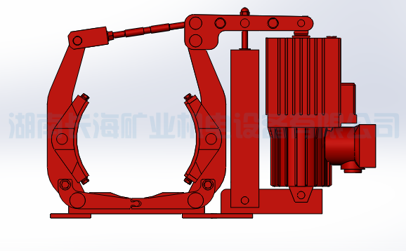 DYW系列带式输送机用电力液压鼓式制动器由制动架和相匹配的隔爆型电力液压推动器两大部分组成。制动架主要摆动点设自润滑轴承,传动效率高,动作灵敏可靠;模压成型的制动衬垫更换方便迅速,寿命长,利用率高;连锁式等退距装置,退距均等,效果良好。推动器动作性能优良,密封性能好,外壳防护等级宽。当通电时,电力液压推动器动作,其推杆迅速升起,并通过杠杆作用把制动瓦打开(松闸);当断电时,电力液压推动器的推杆在制动弹簧力的作用下,迅速下降,并通过杠杆作用把制动瓦合拢(抱闸)。
